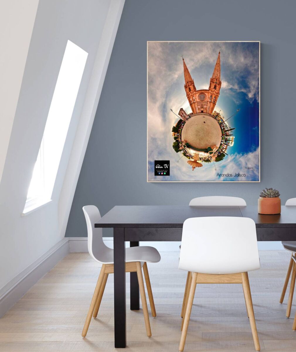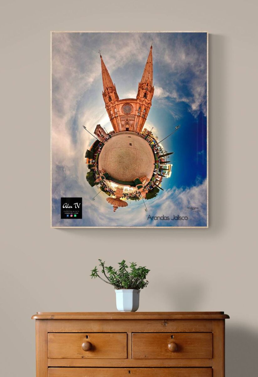 Esta fotografía es el resultado de un proyecto que marcó un antes y un después en mi trayectoria fotográfica. Fue tomada en el parque principal de Arandas, Jalisco, con una técnica que utilicé para capturar imágenes en 360 grados antes de que existieran las cámaras especializadas en este tipo de tomas. El proceso comenzó con la fabricación de un dispositivo especial para montar mi cámara en un trípode, el cual me permitió capturar más de 50 fotografías que se convertirían en esta impactante composición. Cada toma fue calculada con precisión para asegurar que todas las imágenes encajaran sin errores. El verdadero desafío llegó durante la edición, ya que utilicé técnicas avanzadas y horas de trabajo meticuloso para fusionar las fotografías. Este proceso requirió no solo habilidad fotográfica, sino también un dominio en edición y programación, para conseguir un resultado final limpio y armonioso. El resultado es una representación única del parque y la icónica parroquia de Arandas, encapsulada en un pequeño planeta que combina arte, técnica y la pasión que tengo por la fotografía. Adquiere esta obra y lleva contigo una pieza que no solo captura la esencia de Arandas, sino que también simboliza la creatividad y la innovación. Ideal para los amantes de la fotografía, los recuerdos de viaje o quienes buscan una pieza única que decore su hogar u oficina. Esta imagen es una ventana al ingenio artístico y técnico que no pasa desapercibido. Alex Carranza