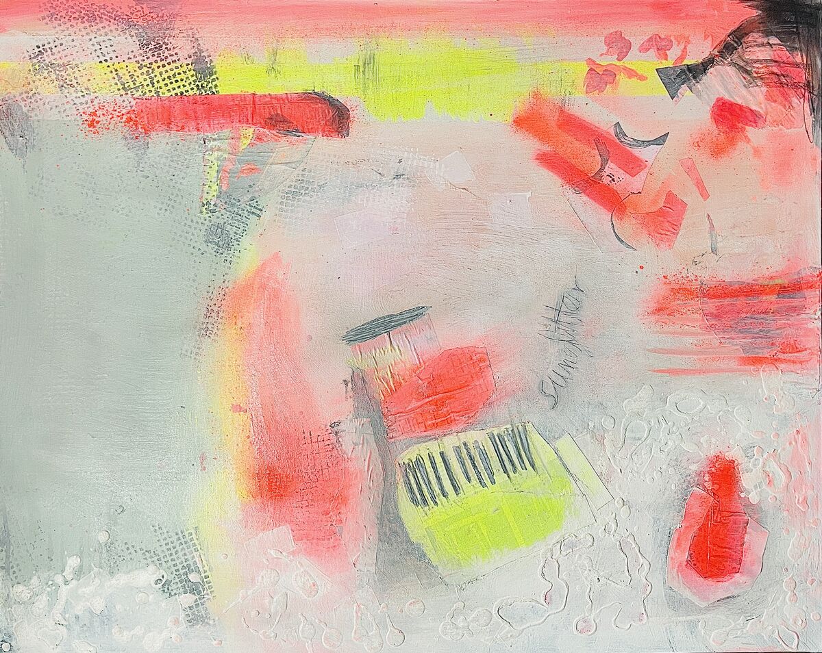 Neon, kleine Leinwand im Format 30 x 30 cm inkl. Neon Rahmen. Der Rahmen ist handbemalt in der gleichen Farbe wie im Bild verwendet.