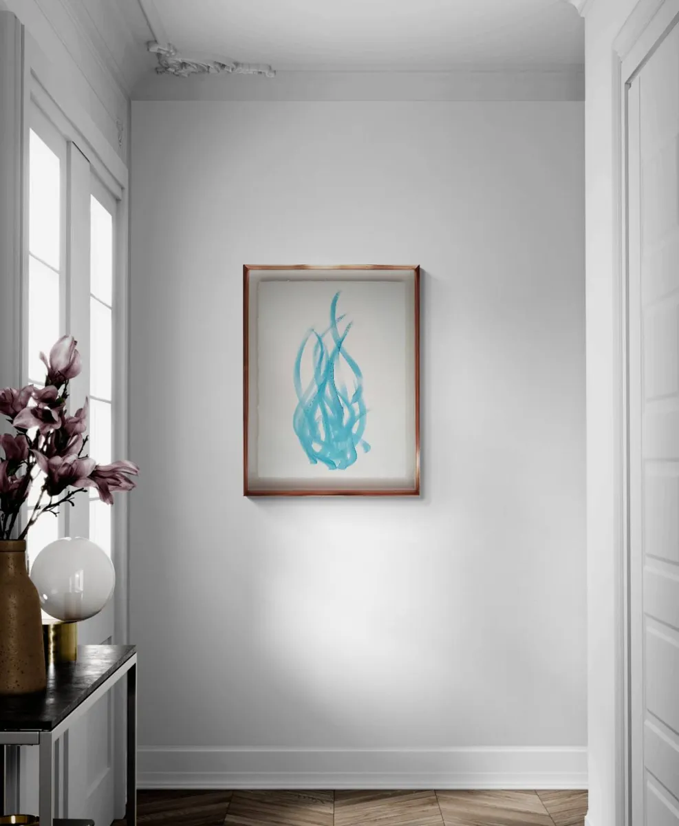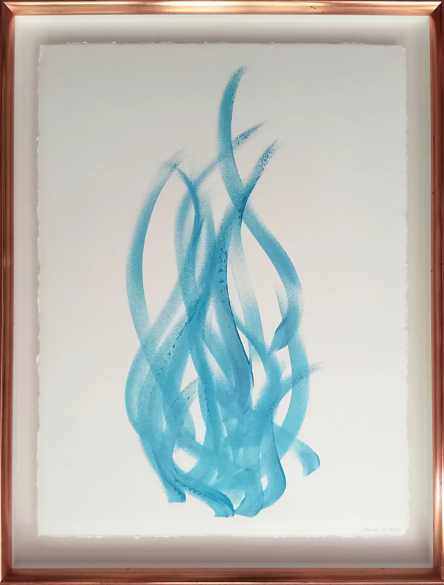 Sold (Düsseldorf) Metallic tempera on HAHNEMÜHLE extra-heavyweight watercolour paper, presented as an object 2cm above passpartout in double frame (copper and a blue one behind it), 70% art glass